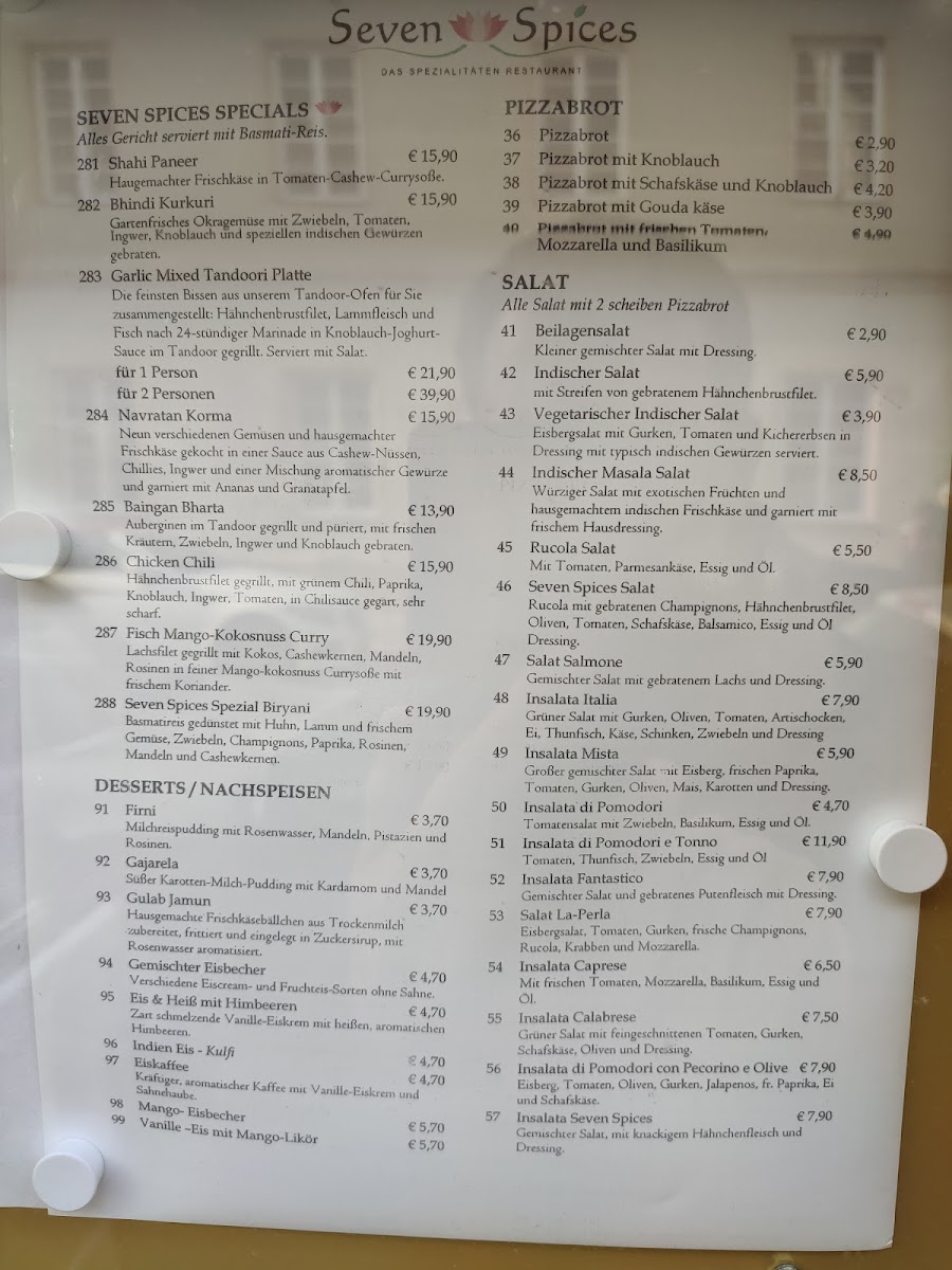 Welcome to Seven Spices, a culinary gem nestled in the heart of Landau in der Pfalz at Konigstraße 20. This acclaimed Indian restaurant elevates traditional flavors, captivating diners with dishes that resonate authenticity and delight. Guests rave about the expertly marinated chicken tandoori and the diverse options of vegetarian thali, allowing for a customizable experience that satisfies every palate.